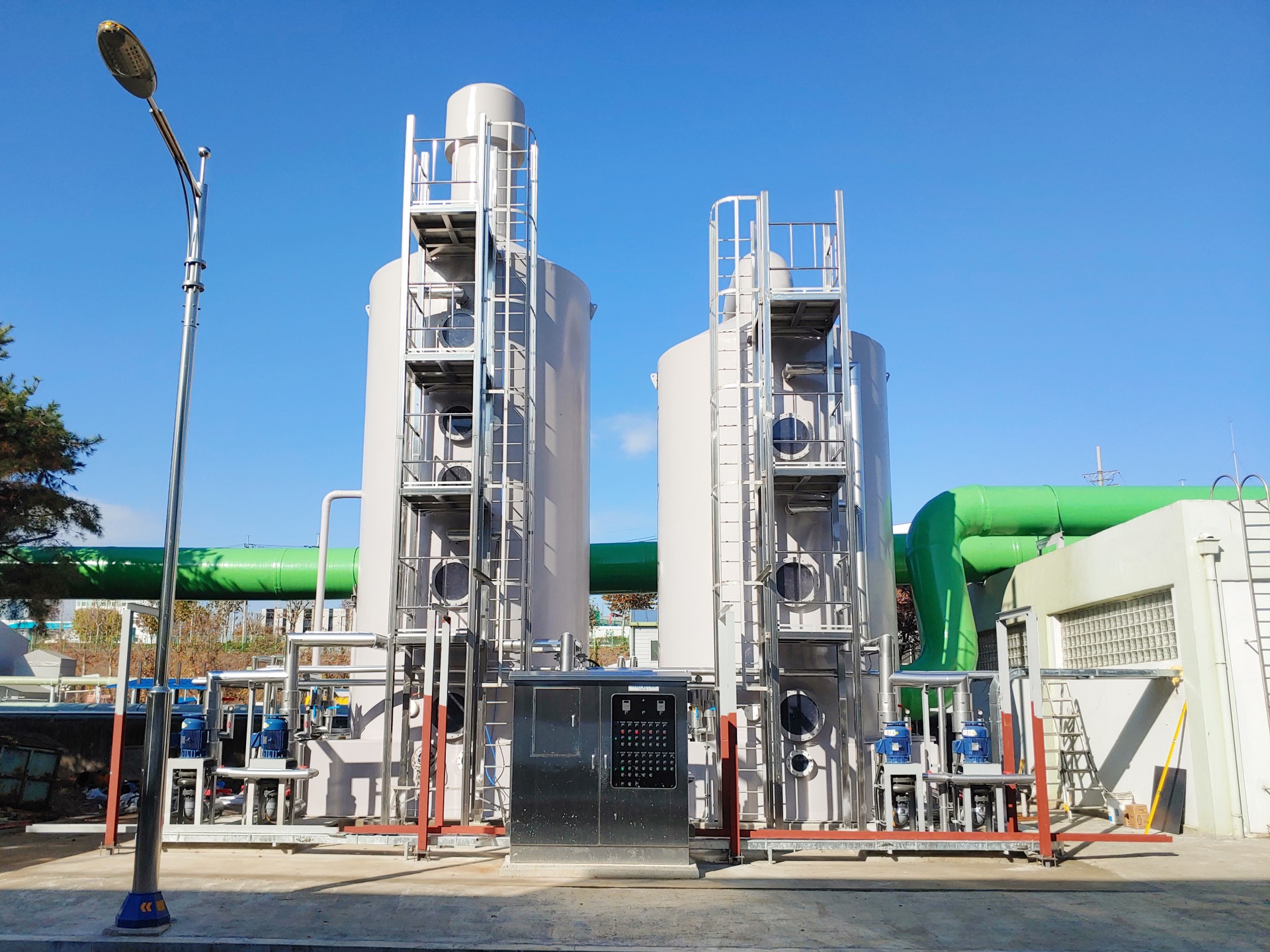 두개의 세정탑에 3가지 약액을 분사하여 세정하는 약액탈취기로 고농도 악취에 적합한 약액탈취기이다.